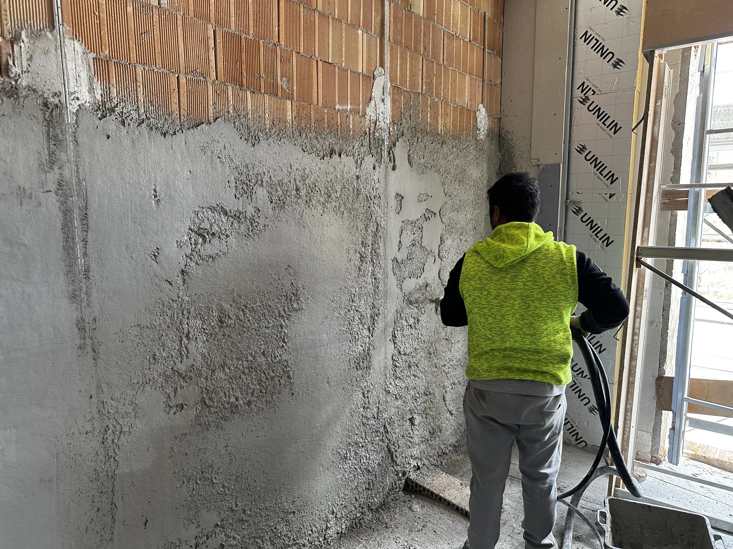 Abbiamo una squadra dedicata all’Intonaco. Siamo attrezzati con pompa G4 380V, sia a silos che a sacchi.