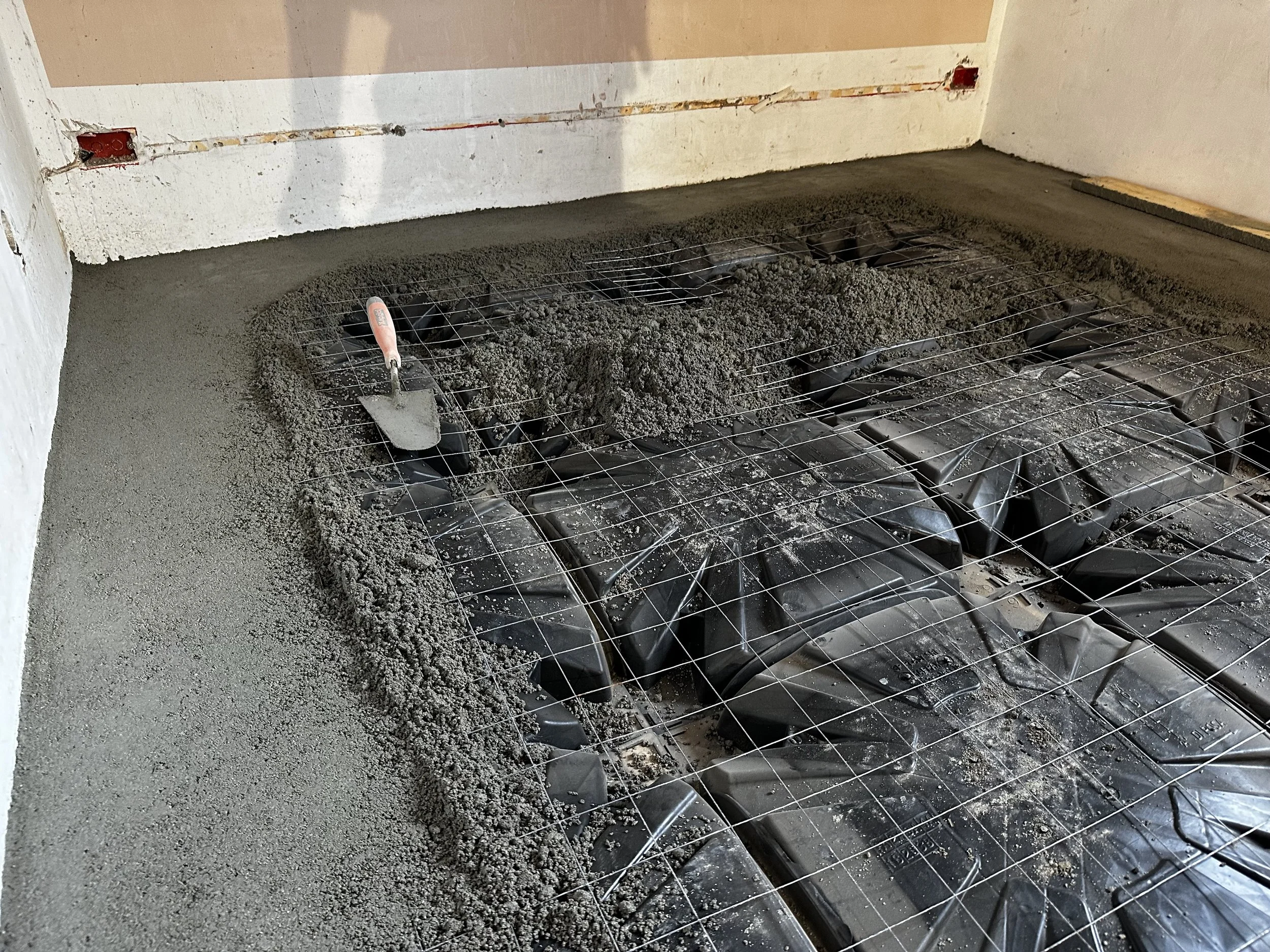 Per costruire solai alleggeriti igloo in polipropilene, Massetto in argilla espansa, polistirolo o cemento cellulare.
