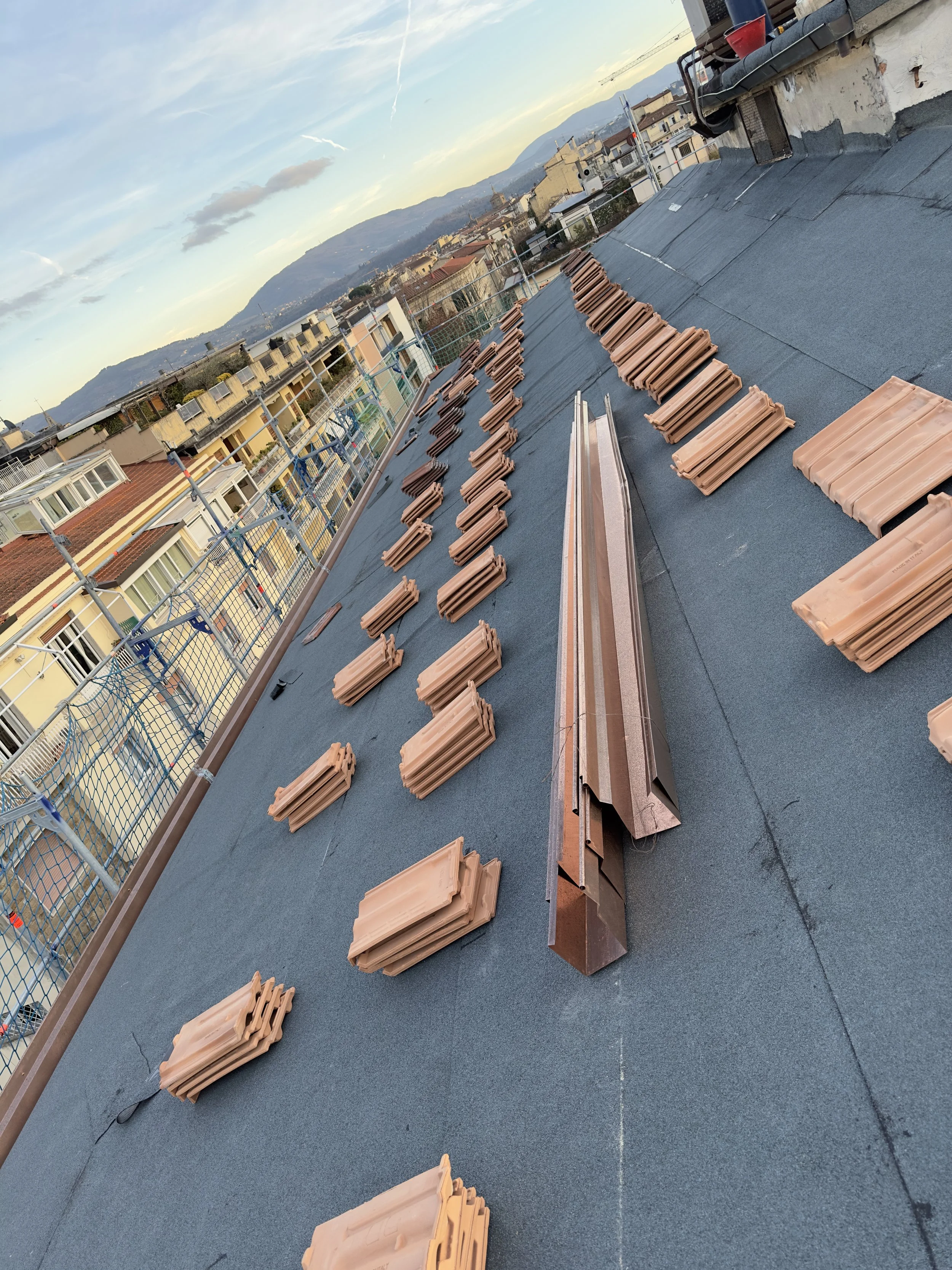 Coperture, orditure verticali e orizzontali: interventi su capriate, tettoie, archi, volte; sostituzione o rinforzo di elementi lignei o metallici; impermeabilizzazione e protezione contro agenti atmosferici, infiltrazioni.